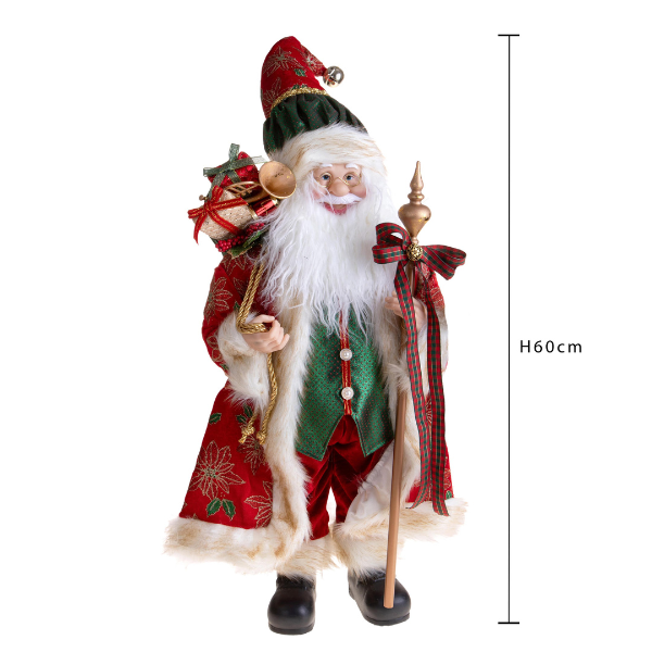Babbo Natale Rococò 60 cm con Bastone : porta un tocco di classe alle tue festività !